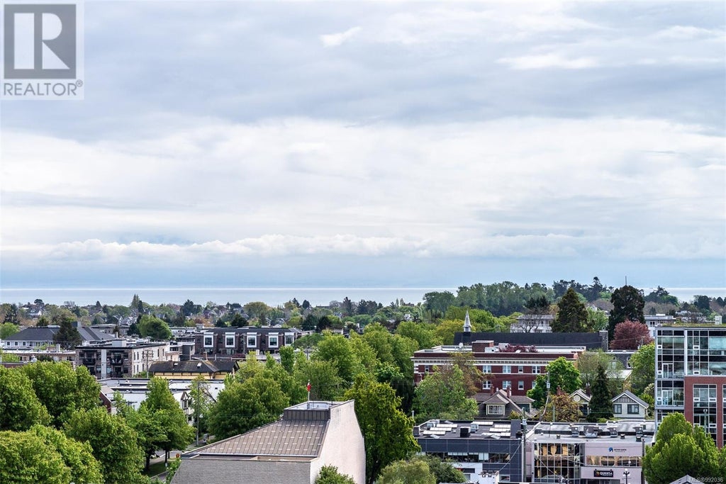 This bright and exquisite condo situated on a southwest facing corner, has views of the Olympic mountains, the Strait of Juan de Fuca and the city. Located at 989 Johnson, a newer modern steel and concrete building features natural light and floor to ceiling windows. This home has quartz countertops, Kitchen Aid appliances, induction cooktop, engineered hard-wood and designer kitchen and bathroom fixtures. The blend of warm wood and concrete accents makes this unit feel like home, perfect for entertaining with the large island. The primary bedroom is spacious and well designed with custom built-ins leading to the ensuite. Located in the vibrant Harris Green neighborhood it is steps from restaurants, coffee shops, gyms, grocery stores and transit. One secure underground parking spot and storage locker included. Central downtown location with Rentals allowed and a pet friendly complex, call today for a viewing! (id:6289)