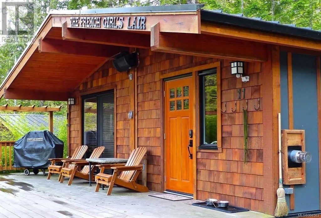 Enjoy simple West Coast living year-round or have your weekend getaway earning extra income for you when you’re away in “The French Girls Lair” at Wild Coast Cottages, Port Renfrew! This cozy bungalow offers all the comforts you and your guests will need – big outdoor deck space with a built-in fire pit, propane feature fireplace in the great room, small modern kitchen with propane range, a full 4 pc bathroom & separate bedroom slider access to the deck. Furnishings are negotiable. Strata amenities include grounds maintenance & property management options are available. A detached storage shed is also included. Within walking distance to Pacific Gateway Marina, surrounded by stunning west coast vistas and with easy access to world famous Pacific Northwest recreation, this is a solid investment with excellent revenue generation possibilities. (id:6289)