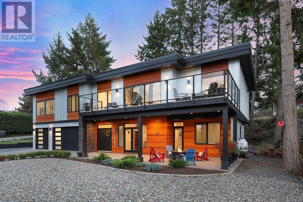 Perched on a quiet cul-de-sac of Sea Otter Place, this striking West Coast contemporary home combines refined modern design with breathtaking ocean views. Built in 2018 by Glazier Construction, the home showcases high-end finishes and thoughtful architecture, offering a perfect balance of sophistication and relaxed coastal living. A standout feature is the spacious 2-bedroom suite on the entry level, each bedroom with its own ensuite, private laundry, and separate patio—an ideal setup for visiting family or a B&B opportunity. Upstairs, the main living area offers open-concept layout, featuring an oversized gourmet kitchen, a walk-in pantry and three oversized bedrooms. The primary suite offers a spa-inspired ensuite and an expansive walk-in closet. A 3-car garage provides ample room for storage and outside room for the RV or boat. (id:6289)