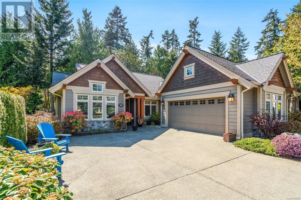 Craftsman-Style Gem at Eaglewood Court. Welcome to this rare, single-level detached residence in a sought-after Qualicum Beach neighborhood with the ocean beach nearby. Largest backyard with a private south facing parklike setting backing onto the golf course. Elegant upscale finishings with 3 spacious Bedrooms, 2 luxury Baths, natural gas fireplace with rock facing. Gourmet kitchen features premium appliances, quartz counters, large island and a garden-view dining. Wood floors, crown moldings, extended ceilings, heat pump, California shutters, & expansive windows. Primary suite includes a W/I closet & spa-style ensuite. A $20K custom guest room doubles as an office/dressing room with vaulted ceilings, BI-cabinets & pull-out bed. Heated double garage was used as a studio which offers epoxy treated floors, BI cabinetry & attic storage. Coveted location just minutes to all amenities, shops, golfing & marina, up to 2 dogs or cats. This home is perfect for easy-care retirement living. For more information or to schedule a private showing, contact Lois Grant Marketing Services at 250-228-4567 or visit www.LoisGrant.com. (id:6289)