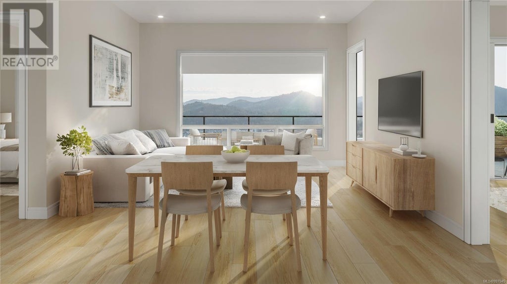 Now move-in ready! This stunning 2-bedroom plus den corner home offers over 1,100 sq. ft. of thoughtfully crafted living space, complemented by an expansive ~900 sq. ft. patio with breathtaking mountain views. Elevated by an upgraded package, this home boasts premium Fisher & Paykel appliances, in-floor radiant heating in the ensuite, and a sleek quartz backsplash in the kitchen. Enjoy the perfect blend of indoor and outdoor living in this luxurious retreat. Welcome to The Ridge at Vista Point, where breathtaking views of the Juan De Fuca Strait, the Olympic Mountains, downtown Victoria, and the Sooke Hills define luxury living. Nestled serenely on the south side of Skirt and Bear Mountain, this exquisitely designed complex offers some of the largest floor plans on the market, with oversized outdoor areas that are perfect for entertaining. Each residence includes a secure underground parking space, storage locker, multi-head ductless heat pump for efficient heating and cooling, a gas cooktop, high-quality vinyl flooring, and quartz countertops throughout. Building amenities feature a state-of-the-art gym, community gardens, bike wash, dog wash, and outdoor patio for lounging. Residents enjoy access to Bear Mountain's world-class offerings, including two championship golf courses, an exclusive gym and pool, fine dining, scenic hiking trails, and more. Conveniently located with easy access to the TC1 highway and just minutes from essential amenities, The Ridge at Vista Point provides unparalleled luxury living. Show home open Saturdays from 1-3pm. Hard hat tours available by appointment only, visit our Vista Point website for more information. (id:6289)
