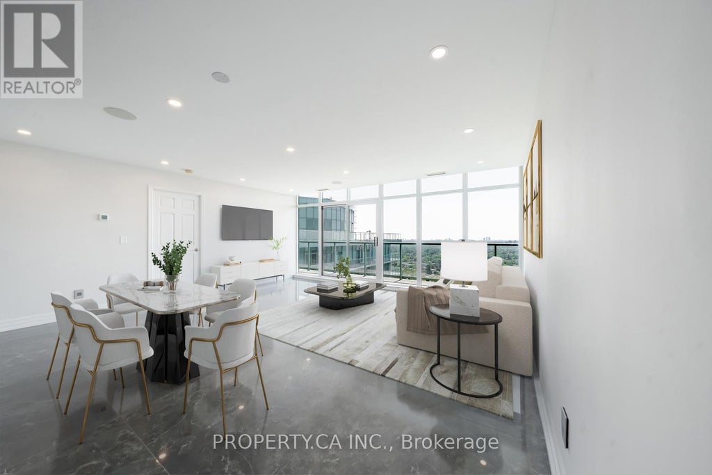 Welcome to this fully renovated, show-stopping corner penthouse , a true masterpiece floating above the city. The moment you step inside, you're greeted by breathtaking, unobstructed views that stretch for miles. The custom-designed kitchen is a chefs dream, featuring a sleek Miele appliance package and sophisticated finishes throughout. Every detail has been curated, including bespoke flooring crafted exclusively for this space, adding warmth and refined elegance. The open-concept living and dining area flows seamlessly onto a wraparound terrace, perfect for entertaining or simply soaking in the skyline. The primary bedroom features floor-to-ceiling windows, terrace access, and an abundance of natural light, while the second bedroom boasts its own private balcony, a rare luxury. Located just steps from Finch Station, with easy access to the 401, premier shopping, dining, and more. Opportunities like this, with outdoor spaces and high-end design are incredibly rare in this coveted neighbourhood. Don't miss your chance to own this penthouse in the sky. (id:6289)