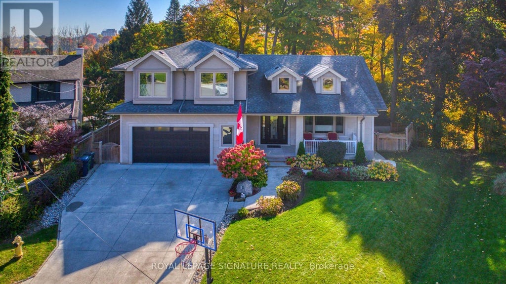 Location Location Location!! Backing onto the Conservation Area with over 10,000 sf of land. This Exquisite Rebuild was Completed in 2016. Lush Forest Views. Aprx 4,500 sf including the Walkout Lower Level. The Principal Areas (LR/DR & KIT) are Open Concept and share a Soaring 14ft Cathedral Ceiling. 4 Gas Fireplaces & Dark Laminate Hardwood shed Ambience and Warmth. The Family Room on the Main is Currently used as a Primary Bedroom with a Walkout to the Patio, Designed & Constructed as either/or, With Stunning Views of the Ravine. The 4 BR Upper Level Boasts 3 Full Bathrooms and Roughed-in for an Upper Laundry. The Lower Level is Immense and is also Roughed-in for an Open Concept 2nd Kitchen, again with Gorgeous Ravine Views! See the long list of Upgrades Attached. (id:6289)