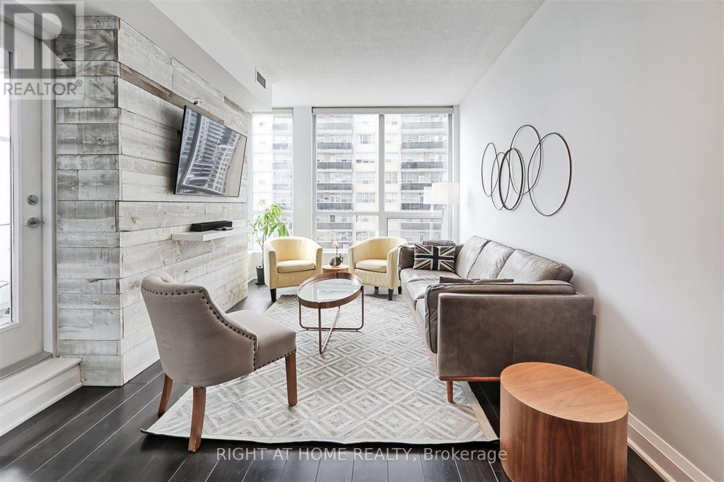 **Price Drop**Iconic Downtown Views | Welcome to your private retreat in the sky. This quiet, cozy corner unit offers an unmatched blend of comfort, style, and location. Featuring a spacious layout, this suite is bathed in natural light with unobstructed panoramic views of downtown Toronto and the CN Tower. Step inside to soaring 9-foot ceilings and a warm, modern ambiance highlighted by a stunning rustic barn wood feature wall, a perfect blend of urban chic and cozy charm. The open-concept living space flows seamlessly, making it ideal for both relaxing and entertaining. Enjoy the incredible amenities, including a Gym, BBQ, Party Room, Movie room, and Jacuzzi overlooking the city. Nestled just steps from the vibrant heart of Yonge & Eglinton, enjoy world-class shopping, restaurants, and instant access to TTC and LRT transit. Whether you're a young professional, savvy investor, or looking to downsize, this suite checks every box. The parking spot is available for rent at $140 per month. Incredible value! (id:6289)
