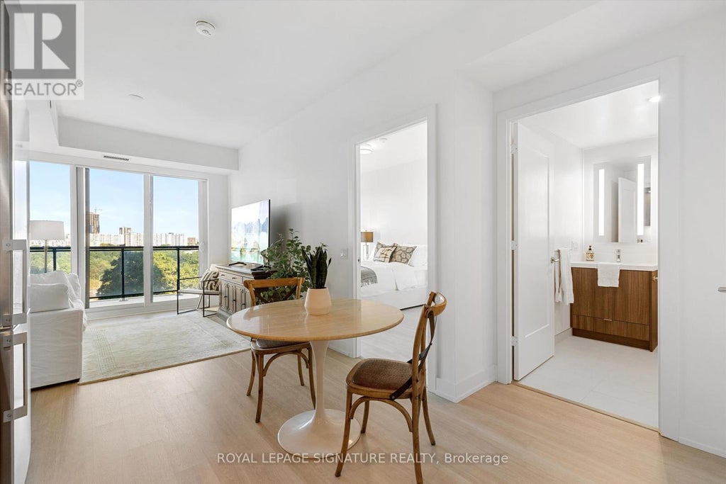 Welcome to Unit 808 at Auberge On The Park a home as lucky as its number, offering comfort, style, and prosperity in every square foot. Unit 808 was one of the first and most desirable choices in the entire development at its pre construction phase! One of the few and largest one bedroom units in the complex with oversized, wheelchair accessible hallway and bathroom. The bedroom is large enough to easily fit a king size bed and additional storage if necessary. This 645 square foot unit features $25,000 spent on custom upgrades including engineered hardwood flooring, additional pot lights and under cabinet lighting, custom countertops, blackout blinds and more. The floor to ceiling windows ensure ample natural light all day long. Enjoy the vast South West views over the sprawling tree canopies and large balcony ideal for relaxing or entertaining. This unit comes with one of only few extra large parking spots and double sized storage locker, normally reserved for the penthouse suites. This premium parking spot is next to the elevators and is in one of the most desirable locations in the building. Urban living at its finest with luxury amenities including 24/7 concierge, state of the art gym, spa, indoor pool with jacuzzi, party/game/media room, pet washing facility, theatre room, playground, deck/garden, bike storage, guest suites and visitor parking. Want some more perks? High speed internet included in the maintenance fees! Ideally located in close proximity to DVP, highways and only steps away from the future LRT, which is sure to increase value in the coming years! (id:6289)