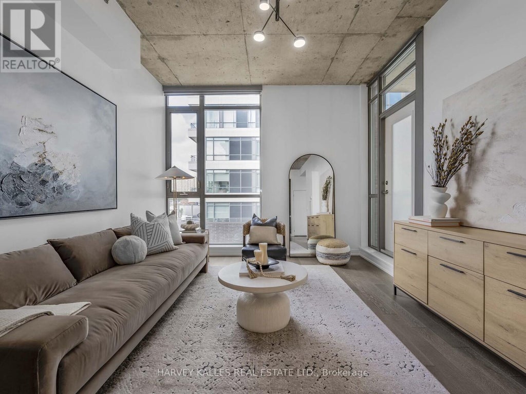 Boutique Living in the Heart of West Queen West. Welcome to Suite 615 at 8 Gladstone, a stunning one-bedroom residence offering 630 sq. ft. of impeccably designed living space. With soaring 10-foot exposed concrete ceilings and floor-to-ceiling windows, this open-concept suite is bathed in natural light and exudes sophisticated urban character straight from the pages of a design magazine. Every detail has been thoughtfully curated, including a brand-new custom kitchen island, a rare and sought after upgrade that maximizes both culinary functionality and entertaining space. Additional enhancements include designer light fixtures and custom closets, seamlessly blending form and function with elevated style. Step onto your private balcony to soak in the city's vibrant energy, or retreat indoors to a space that feels equally refined and inviting. At 8 Gladstone, modern conveniences extend beyond your suite. Enjoy amenities such as visitor parking, an elegant party room, and a dedicated dog wash station for your furry best friend, truly the perfect blend of boutique luxury and urban sophistication. Positioned in one of Toronto's most dynamic neighbourhoods, you're just steps from Trinity Bellwoods Park, Ossington, Liberty Village, Dundas West and Little Portugal. With cafés, restaurants, shops and grocery stores (Metro at your door, FreshCo across the street) plus the Queen Street streetcar at your doorstep, you are perfectly connected to everything the city has to offer. (id:6289)