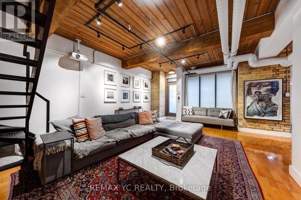 Don't Miss This Rare, True Authentic 2-Storey Loft Unit, Approximately 1,500 sqft of living space Located Just West of Spadina/Wellington. Soaring 10-Ft Ceilings Throughout The Unit With Floor To Ceiling Windows. Generous Main Floor Open Plan Living/Dining & Chefs Kitchen With Jennair Premium Gas Stove & Jennair S/S Fridge. Additional Bedrm W/Double Mirrored Closets. Separated 2nd Level Primary Bedroom Is Not Disappointing Anyone With Its Great Size, Den W/Dual Closet, Fire Place, and Ensuite Bathroom!. Enjoy Your Summer With Exclusive BBQ Machine Located At Front Terrace! Located In the Prestigious King West Neighbourhood. The Well, The Most Exciting New Shopping Centre On your Doorstep, Min To Toronto's Vibrant Financial and Entertainment Districts, and only a short trip to the Rogers Centre stadium, the CN Tower, and the Metro Toronto Convention Centre, as well as an endless list of shops, restaurants, bars and clubs! (id:6289)