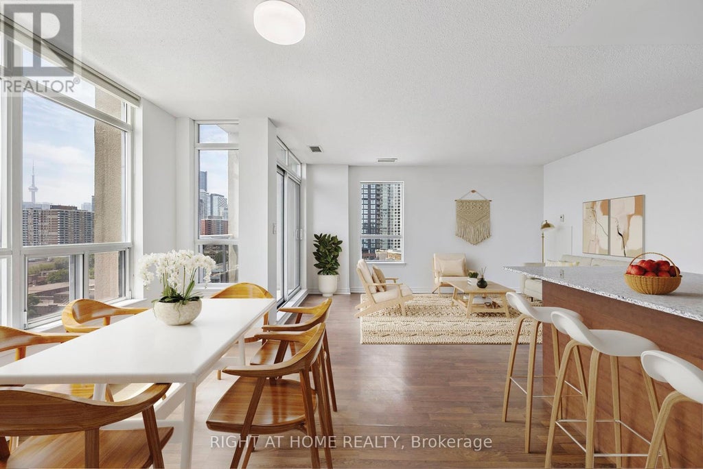 Welcome to this beautifully updated 2-bedroom, 2 full bathroom corner Penthouse suite offering 854 sq ft of thoughtfully designed living space. Flooded with natural light from wall-to-wall windows, this sun-drenched unit is perfect for those who work from home or simply love a bright & airy atmosphere. The spacious & modern kitchen features upgraded stainless steel appliances, a large granite breakfast bar, & opens seamlessly into the spacious living & dining areas, ideal for both everyday living & entertaining. Enjoy wide open, unobstructed south-west views of the downtown skyline. The primary bedroom comfortably fits a queen-sized bed & includes a renovated ensuite bathroom. Freshly painted from top to bottom, this move-in ready suite also includes private, ensuite laundry, an owned parking space & locker, 24-hour concierge & security, plus access to an amazing rooftop terrace. The ultimate in urban convenience, located walking distance to both Wellesley TTC & Sherbourne TTC stations, Bloor St, TMU, U of T, No Frills, FreshCo, trendy restaurants, cafes, parks & Don Valley trails. Mins drive to DVP. Very well managed building w/ great maintenance fees. This is an incredible value for a spacious 2 bedroom corner unit in an ultra convenient location. (id:6289)