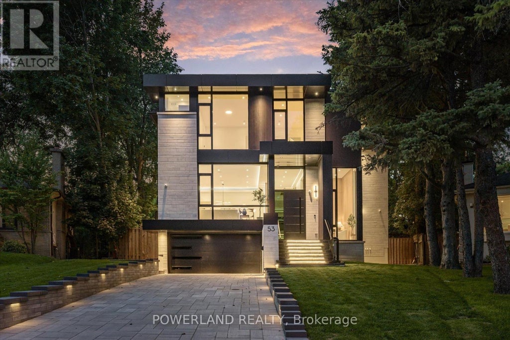 Welcome to this brand-new, custom-built modern mansion, offering over 7,200 sq. ft. of refined living space (5,124 sf across the main and second floors + 2,106 sf in the finished walk-up lower level), perfectly situated on a premium diamond-shaped lot (huge 11,324 sq. ft.) in the prestigious, nature-rich Bayview Village neighbourhood. Steps to ravine trails, parks, Bayview Village Mall, Bessarion Subway Station, Hwy 401, and Torontos top-ranked schools. This architecturally striking residence blends modern sophistication with timeless elegance. Dramatic ceiling heights (14' in foyer & office, 11' on main, 10' on second, and 12' in the lower level), a floating staircase illuminated by a 6x6 skylight, and floor-to-ceiling picture windows create bright, airy interiors infused with natural light. The chef-inspired kitchen is a true showpiece, featuring Miele and Fisher & Paykel appliances, an oversized island with breakfast seating, a fully equipped butlers pantry, and a discrete spice kitchen for the passionate cook. Upstairs, the luxurious primary suite is a serene retreat with a spa-inspired ensuite (heated floor) and a custom dressing room. Four additional bedrooms, each with its own ensuite, provide comfort and privacy for the entire family. The finished walk-up lower level is crafted for both entertaining and relaxation, showcasing a spacious recreation room with an expansive wet bar, a private nanny/in-law suite, and a dedicated exercise area--all enhanced by radiant heated floors throughout. Additional features include Private elevator serving all levels, Control4 smart home automation system, Wide-plank 7.5" white oak hardwood flooring, LED strip & pot lighting throughout, Instant hot water recirculation system, Closed-cell spray foam insulation for the entire home, Hi-tech entry door with fingerprint recognition, Smooth-operating triple-pane laminated security glass windows. An extraordinary opportunity to call this masterpiece your home. (id:6289)
