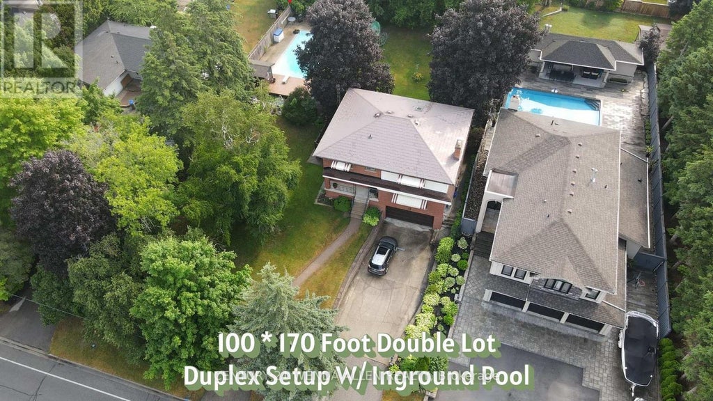 DOUBLE 100 BY 170 FT LOT!! Possible buyer due diligence could lead to lot severance to maybe keep the existing home and build on the severed lot. Offers anytime. Home is set up like a duplex but can easily be converted into a one family home. Main floor 1 bedroom unit features a large living room with gas fireplace and large front facing window, kitchen with pantry, dining room, 4 piece bath and bedroom with a walkout to deck. Upper 2 bedroom unit features a large living room with gas fireplace and large front facing window, eat in kitchen with built in appliances, huge pantries, skylight and walk out to deck, dining room with additional walk out to deck, 4 piece bath, and 2 bedrooms. Upper unit has flat ceilings. Hardwood stairs, wainscotting and crown molding throughout most of the home. Basement includes a rec room with built in bar and garage access. Metal roof. Newer furnace. Air conditioner 24. Huge yard with inground pool, shaded covered areas, pool house and pond/water feature. (id:6289)