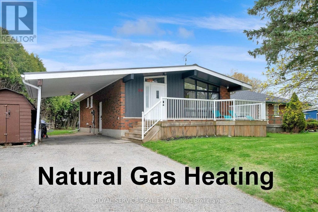 New Steel Roof! Newer Natural Gas Heating Unit. Natural Gas Fireplace Insert! Enjoy The Quaint Village Of Orono In This Terrific Detached 3 Bedroom Brick Bungalow. Great Starter Or Downsizer! Small Town Living With All The Amenities Of The City. Walk To Shops, Cafes, Bakery, Pharmacy & More. Surrounded By Greenspace, Crown Lands & Orono Arena. Easy Access To Hwy 115/35, 401 & 407. This Open Concept Post And Beam Boasts Cathedral Ceilings Throughout With Original Exposed Beams. Huge Front Porch & Covered Rear Deck On Large Irregular Lot. Spacious Living Area Includes Electric Fireplace, Newer Wide Plank Laminate Floors & Huge Windows. Galley Style Newer Two Tone Kitchen With Granite Counters, Stone & Glass Backsplash, Ceramic Heated Floors & Breakfast Bar All Open To The Dining Area & Main Living Area. Sloped Ceilings continue into the Bedrooms, Primary Bedroom With Double Windows & Double Closet. Two Further Nicely Sized Bedrooms For The Kids! Updated Main Bath With Modern Wood Vanity Has Loads Of Storage & Ceramic Floors. Wide Open Unspoiled Mostly Finished Basement With Separate Entrance Includes Brick Fireplace With Gas Insert, Custom Bar Area & Large Storage Room. Easily Convert The Basement To A Nanny Suite For Grandma Or Extended Family. This Home Has Multiple Heat Sourses Including Newer Efficient NATURAL GAS BOILER, Heated Kitchen Floor, Electric Fireplace On The Main Level & Gas Fireplace In The Basement....It Couldn't Be Cozier!. New Steel Roof 2024, New Exterior Side Door 2024, Newer Gas Boiler approx 3 yrs old. (id:6289)