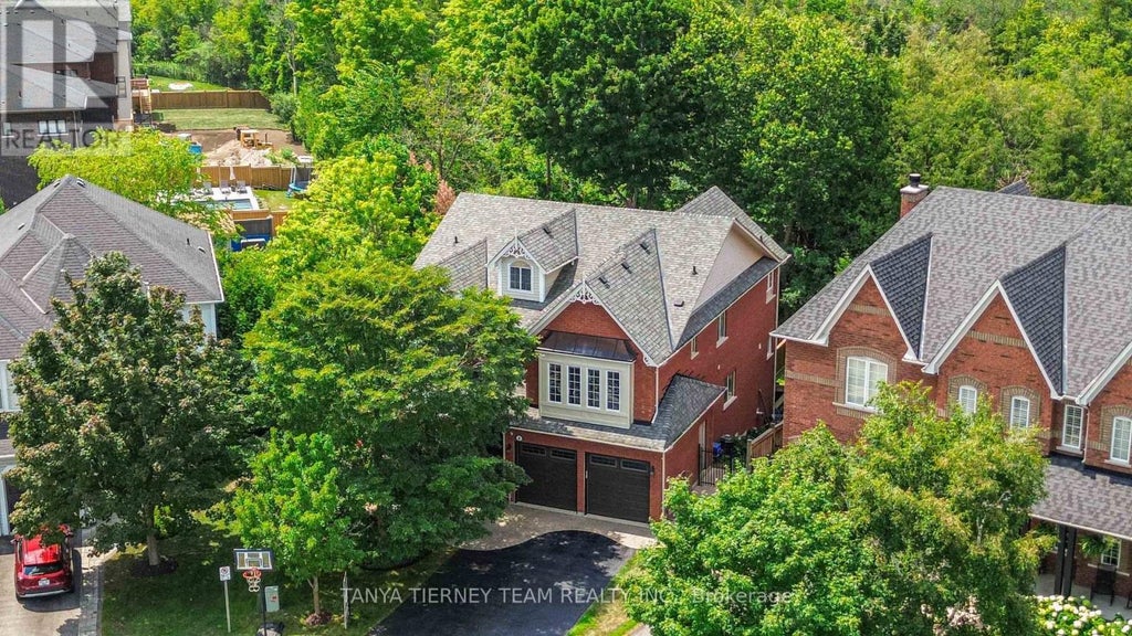 Ravine lot with in-ground pool & walk-out basement! Tributes 'Hawkins' model situated on a quiet court featuring a lush treed lot with extensive landscaping, manicured gardens & a private backyard oasis compete with in-ground saltwater pool, waterfall feature, interlocking patio, entertainers bar & gated access to the treed lot behind. Inside offers an open concept design boasting elegant formal living room & dining room with coffered ceiling & dry bar. Luxurious travertine flooring throughout. Updated kitchen with granite counters, large centre island with breakfast bar, pantry, stainless steel appliances & sliding glass walk-out to the deck with panoramic ravine views! Family room with cozy gas fireplace & custom stone surround. Dedicated main floor home office complete with custom built walnut desk and cabinets - perfect for working from home. Main floor laundry room with garage access. Upstairs offers additional living space in the open concept den - great retreat for teens! The primary bedrooms boasts a 4pc ensuite & walk-in closet with organizers. 2nd & 3rd bedrooms come with a 4pc jack & jill ensuite! Room to grow in the fully finished walk-out basement with spacious rec room with gas fireplace & bar area, games room with relaxing sauna & amazing theatre room for movie nights! Upgrades galore including california shutters, pot lighting, built-in speakers, 9ft ceilings, roof 2020, furnace 2022. Nestled in a demand community, steps to schools, parks, transits & downtown Brooklin shops! (id:6289)