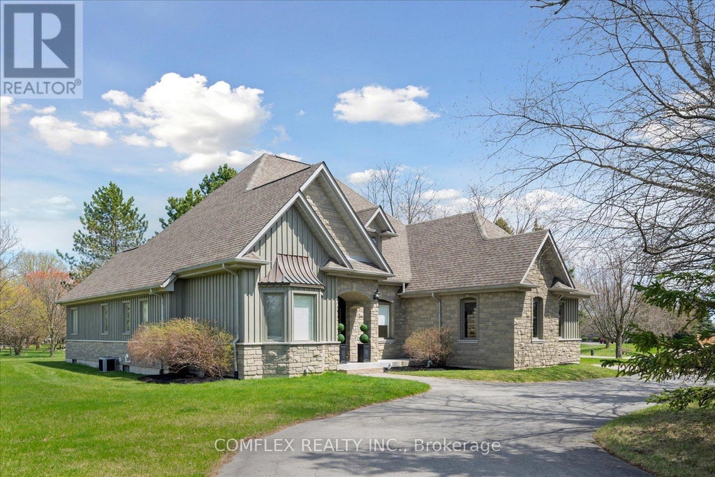 Gorgeous Custom Bungaloft on 1.16 Acres in Prestigious Bowmanville Neighbourhood. Welcome to this exceptional, custom-built bungaloft, located on a court and serviced by natural gas. From the moment you arrive, the attention to detail is unmistakable. The exterior showcases timeless craftsmanship with custom stonework, copper accents, marble sills, and soaring rooflines that combine to create stunning curb appeal. Step inside to discover a bright and airy open-concept layout that perfectly balances elegance with comfort. The main living space features solid hardwood floors, recessed lighting, and a great room with cathedral ceiling and nat gas fireplace. The freshly renovated gourmet kitchen is a true centerpiece, complete with full-height glass cabinetry, Corian countertops, walk-in pantry, and stainless steel appliances. A sunny breakfast area opens to a charming sunroom, ideal for your morning coffee or a quiet retreat. Main floor also includes a beautifully updated laundry/mudroom and well-appointed bedrooms, each offering private or shared access to ensuite bathrooms for optimal convenience. Upstairs, the spacious loft is a standout feature, offering endless flexibility. With vaulted 10-foot ceilings, a skylight, gleaming hardwood floors, natural gas fireplace, and its own 3-piece ensuite. This large space is perfect as a family room, home office, or private in-law suite! Property offers ample space for children to play, room to build a shop or pool, gardening, or simply enjoying the outdoors. The covered patio provides a perfect spot for year-round entertaining. Freshly finished basement adds custom glass office, Wet bar, Engineered hardwood flooring, huge bedroom, and fitness space. Located just minutes from Bowmanville's vibrant urban center, two golf courses, and the Bowmanville Valley Conservation Area, this home offers the ideal balance of serenity and accessibility. Quick access to Highways 401 and 407/418. Roof 2018, Furnaces 2016, A/C 2019. (id:6289)