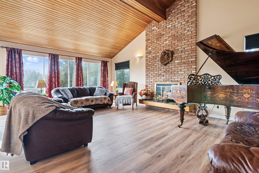 The Location You've Been Waiting for! Bright Executive 5 Bedroom Home in the Exclusive West 35 Estates. Crown Jewel Property - Nestled on Gently Rolling 2.66 Acres Overlooking the River. *Open & Spacious with 2,500+ sq.ft., Vaulted Ceilings, Grand Skylight Front Entrance & South-facing...with Huge Windows Allowing an Abundance of Natural Light. This Air Conditioned Home Offers a Total of 5 Bedrooms - 3 up & 2 down, with 3 Full Baths/1 Half Bath. *Oversized Primary Bedroom with 5pc Jacuzzi Ensuite. Sunken Living Room & Family Room (both with Wood Burning Fireplaces). *Spacious Island Kitchen - Overlooking the Family Room, Deck & Backyard. New Installed Vinyl Plank Flooring & Deck. Double Attached 22x22 Garage, Drilled Well & Septic Tank/Field. *Magnificent Location - Only Steps to the River, Lush Views from Every Window...& a Short Distance to Devon, Airport, Spruce or Edmonton. Plenty of Room to Live Your Acreage Dream. Enjoy.