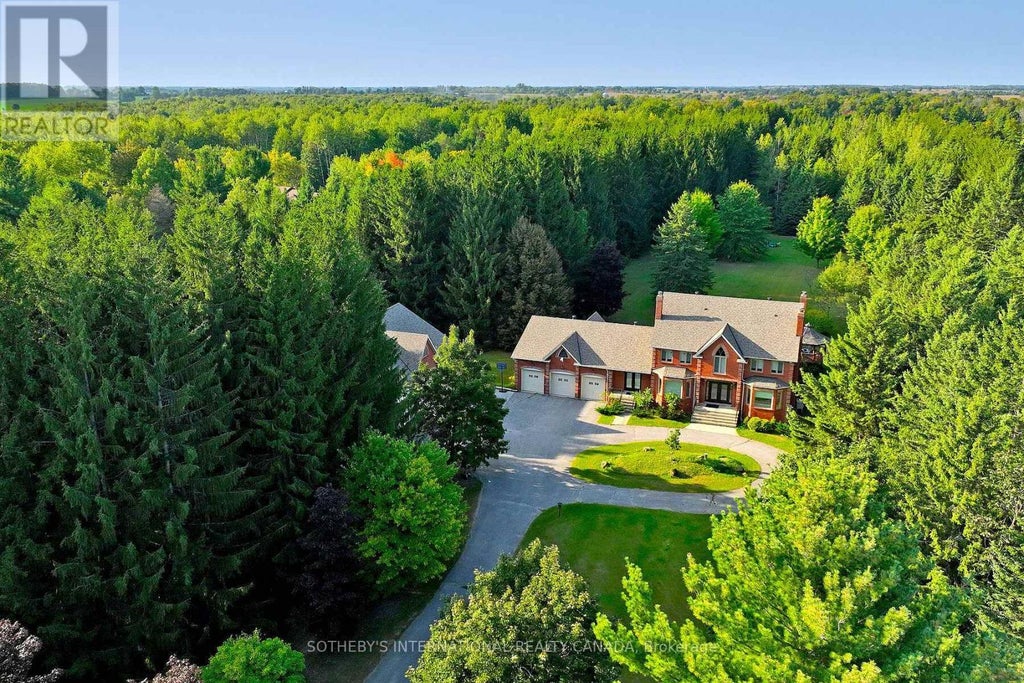Discovering an extraordinary 10-acre private oasis with luxurious contemporary living at its finest. Enchanted forest surrounds massive table land, providing breathtaking greenery views and ideal setting for outdoor entertaining and large gatherings. Both the primary and secondary buildings are beautifully situated with lush landscapes. With easy access to Uxbridge equestrians, golf courses, ski resorts, fine dinings, optional groceries and shoppings, and fine schools. It also enjoys Markham and Toronto offerings within a 30-min drive. An immensely deep driveway sets seclusion apart from public roads. The tree lined lane and a circular landing gracefully leads an impressive arrival experience. Extensive renovations in 2017 and 2021. (Building #1) Main residence boasts appx 6,500 sf of total living incl 4,400 sf above grade. Main 9 foot ceilings. Popular ground level bedroom with full bath. Plus lower In-law suite. Enormous library/ofce. Fully updated Kitchen, Baths & Laundry. Lavish stone counters, slab surfacing & hardwood floorings. Premium millwork & cabinetry system. A complete set of upscale appliances. Splendid lighting fixtures & chandeliers. Newer Roof. Plenty of newer windows. Main attached garage park appx 6 cars. (Building #2) Detached standing alone additional garage/ workshop building. Appx 2000 sf interior & high appx 15 ft ceilings. An enclosed room, separate furnace, AC, ventilation, moisture barriers, coated flooring, newer roof & drywall, 6 large windows 3 bay doors, 270 AMP/240V e-panels. Ideal for car collectors, workshop pros & man cave champions. The enormous workshop opens to the magnificent outdoor spaces for a wealth of versatile and user friendly possibilities. Private walking trails end with charming gazebo and enlarged decks, inviting relaxing suburb retreats and gorgeous sunset views. For those seeking a perfect blend of tranquility, luxury, and amenity conveniences, this serene sanctuary cultivates endless mindfulness and family growth. (id:6289)