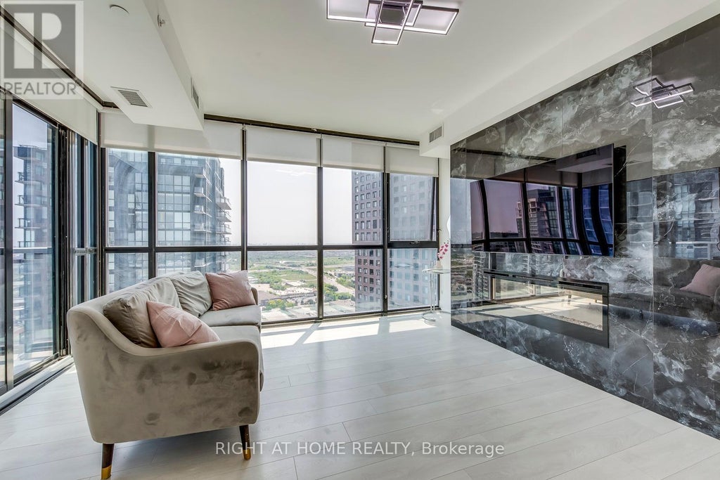Welcome to this 2 Bed+2 full-Bath Corner Unit on the High Floor! This Popular Essex Model Comes Full Of Upgrades And Custom Features- Premium 24X48 Porcelain Backs-plash, Custom Kitchen Island With B/I Wine Rack And Waterfall Cabrera Marble Countertop., Custom B/I Fireplace Feature Wall Whats Audio Video Station Ready And Same Luxurious Tile As The Backs-plash, Led Under Cabinet Lighting And Elfs. 9 feet ceilings,Floor To Ceiling Windows,Unit Boasts 811 Sq.Ft+40Sq Balcony, Sit in the Balcony,Enjoy a Cup of Coffee And Gorgeous South East Views!!** EXTRAS ** 1 Owned parking , 1 Owned locker. Ideally situated just steps away from the VMC Subway, Transit, Hwy 400, Wonderland, shopping, and more. Its perfect For Modern Urban Living. (id:6289)