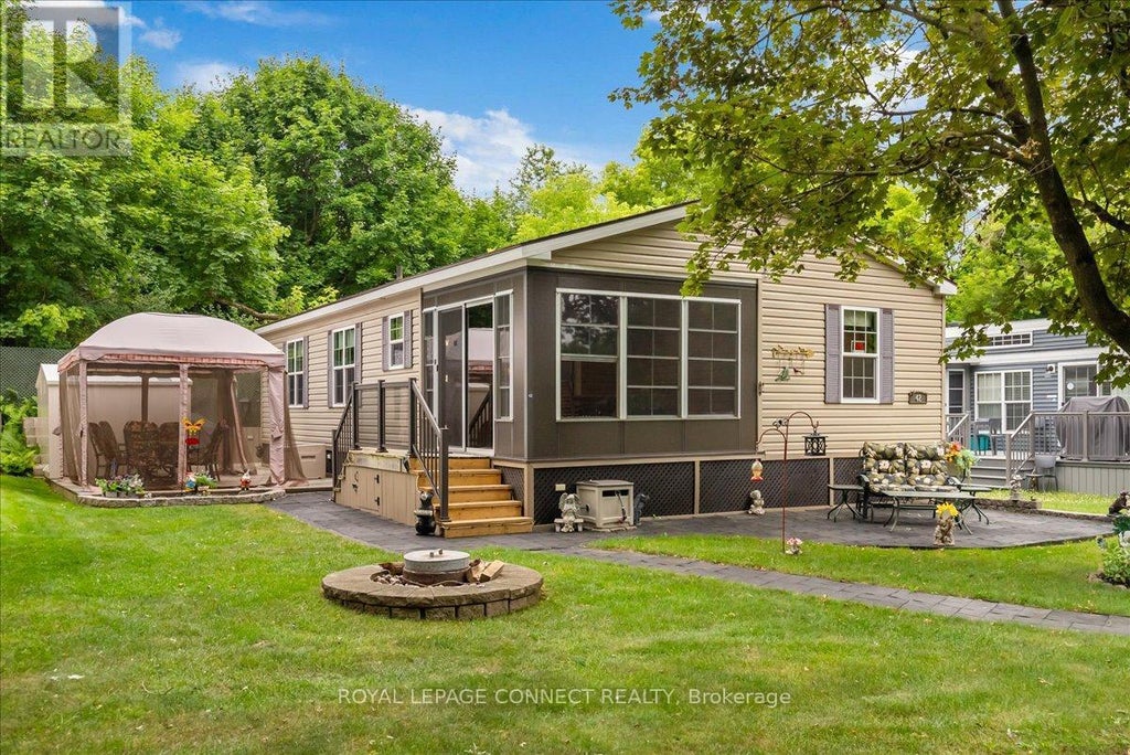 Welcome To This Exceptional 2014 Northlander Built "Escape All Season" Model. Approximately 1000sqft, This Rarely Offered Double-Wide Unit Is Nestled In The Exclusive Adults-Only Section Of The Highly Sought-After Cedar Beach Resort. Situated On The Shores of Musselman's Lake, Just 40 Minutes From Toronto! This Spacious And Thoughtfully Designed 2-Bedroom, 2-Bathroom Retreat Features A Generous Open-Concept Kitchen And Living Room, Two Electric Fireplaces & A Handy Storage Room. Enjoy Your Morning Coffee Or Evening Glass Of Wine On The Screened-In Porch. Relax Or Entertain Outdoors Under The Gazebo, By The BBQ, Or Around The Cozy Firepit. A Handy Shed Adds Even More Convenience For Storage. Immaculately Maintained, This Unit Comes Fully Furnished And Ready For It's New Owner! Simply Move In And Start Enjoying Your Home Away From Home. And With 2025 Fees Already Paid, Theres Nothing To Do But Settle In And Relax. The Resort-Style Community Offers An Abundance Of Amenities And Meticulously Cared-For Grounds. Whether You're Looking For A Summer-Long Escape Or A Weekend Getaway, This Adult-Only Section Offers Peace, Quiet, And A True Sense Of Retreat. Season Runs From April 1st To October 31st (Weather Permitting). Don't Miss This Opportunity To Own A Turnkey Vacation Property. Please Note This Is A Gated Community And Appointments For Viewings Must Be Made Through Listing Agent Or A Realtor. (id:6289)