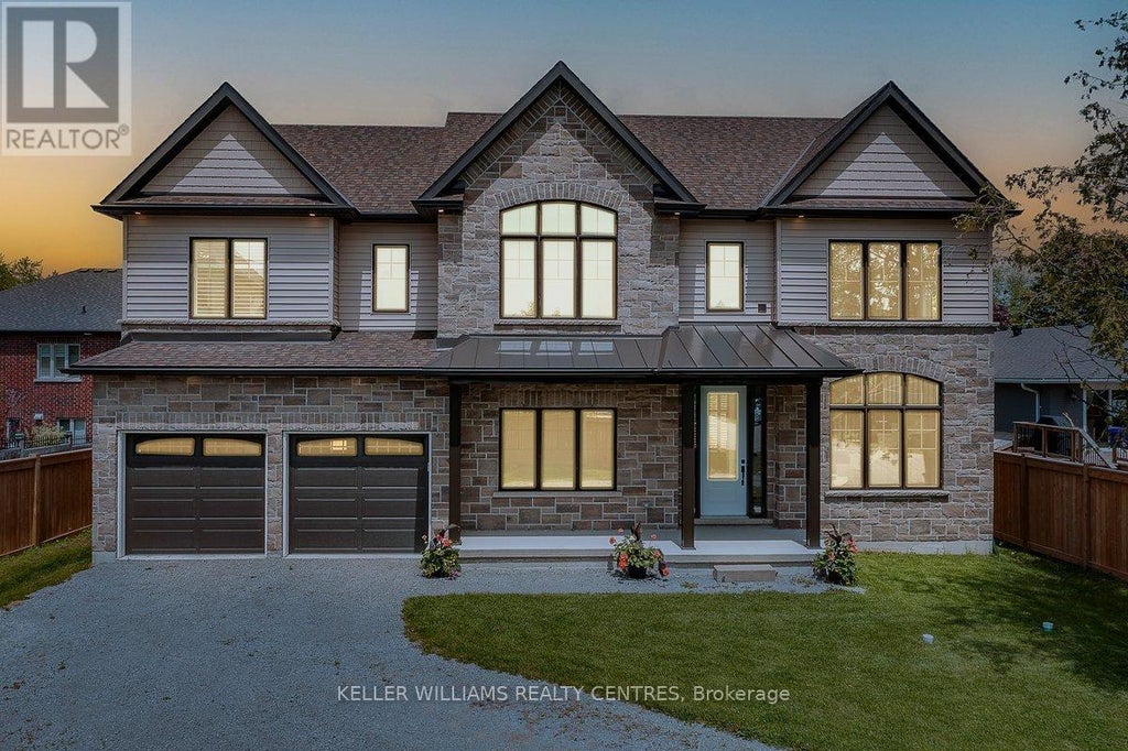Immaculate custom built home located in a very desirable, mature area of many built homes by owner with one of a kind design overlooking De La Salle park and Lake Simcoe views. Lovely curb appeal with stone front, covered porch entry and extra-large windows making for beautiful bright spaces. The great room design has a floor to ceiling stone fireplace with a barn wood beamed mantle and walkout from dining room to a covered porch and fenced yard. The open concept kitchen features stainless steel appliances, center Island, quartz counter tops, glass herring bone backsplash and a conveniently located office space. A large open foyer is a focal point to a floating oak staircase leading to the upper level loft family room , 3 generous bedrooms including a primary suite with 5 pc ensuite and spacious walk in closet. Convenient 2nd level laundry. Quartz counters throughout. Attractive upgraded engineered hardwood floors and porcelain tile throughout as well as pot lit ceilings in many areas. Mud room access to the garage & a newly paved Drive (Sep 2025). Also included are Rough ins for 3pc bath in basement, alarm system and power for a E-Vehicle in the garage & pot-lit soffits. New paved driveway ordered and will be installed in early September. All this is just steps to beautiful sandy beaches including private Springwood Beach Association at Brule Lakeway, public transit at the corner and all amenities. This one is a beauty! (id:6289)