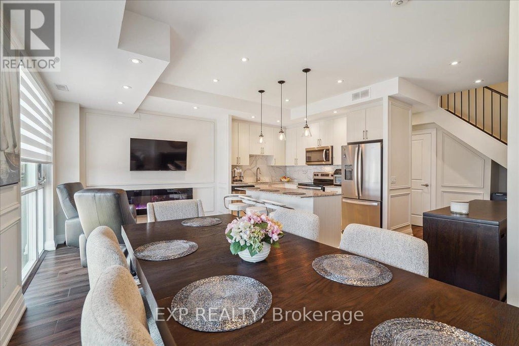 Bright and spacious 2-storey stacked townhouse - ideal for first-time buyers, growing families, or anyone who wants more from their space. Thoughtfully upgraded with quality finishes throughout, including a sleek modern kitchen, wide-plank flooring, and stylish fixtures. Open-concept layout with large windows and two private balconies - one off the main floor, one off the second bedroom - plus access to a well-designed rooftop terrace perfect for relaxing or entertaining. Upstairs, the primary bedroom includes a walk-in closet and ensuite, while the second bedroom opens directly to its own outdoor area. Three underground parking spots offer real flexibility - use one, rent the others for $170-$200/month each. Secure locker included. Steps to schools, parks, transit, and the 427. Stylish, functional, well-located, and a great investment! (id:6289)