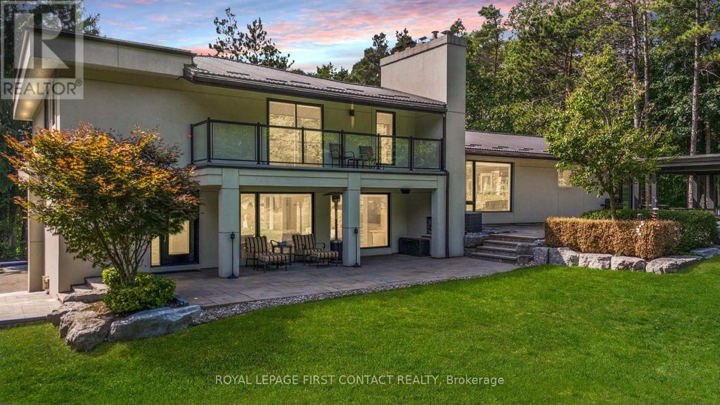 A rare jewel in Kings crown, this extraordinary residence combines luxury, privacy, and sophistication in one of Ontarios most prestigious communities. Set on a massive, beautifully landscaped lot (approx. 4.28 acres) and embraced by mature trees, the property offers an unparalleled opportunity to enjoy refined living in a setting celebrated for its rolling hills, equestrian estates, golf courses, and timeless natural beauty. From the moment you arrive, the scale and presence of this estate make a lasting impression. The expansive driveway accommodates 25 plus vehicles, perfect for grand entertaining, while an additional detached double garage adds both practicality and convenience. Striking modern architecture is elevated by stucco, sleek lines, and lush landscaping, creating a true statement of elegance. Inside, the home reveals high-end craftsmanship and superior finishes throughout. With 3+1 bedrooms and expansive living spaces, every detail has been thoughtfully designed for comfort and style. Floor-to-ceiling windows frame serene views of the private grounds, while premium flooring, cabinetry, and fixtures enhance the luxurious feel. The principal rooms flow effortlessly, striking the perfect balance between open-concept living and warm, intimate spaces. Multiple walkouts extend the living experience outdoors, connecting to patios and decks ideal for relaxation or gatherings against the backdrop of a private, treed landscape. Living in King is more than owning a home, it is embracing a lifestyle. Known for its charming villages, top-tier schools, boutique shops, and gourmet dining, King offers the perfect harmony of country tranquility and urban convenience. With easy access to major highways and Toronto, you can enjoy the peace of countryside living without sacrificing proximity to the city. This is not just a property, it is a private estate, a true retreat, and a rare opportunity to own in one of Kings most coveted addresses. (id:6289)