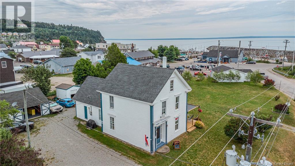 Whether you're seeking a family home by the sea, a vacation rental with character, or a small seasonal business, this is a rare offering in scenic Alma. This heritage property offers character, charm, and coastal views. Lovingly maintained, this story-and-a-half, three-bedroom residential/commercial zoned property has been operating as a seasonal kayak business and café. It presents an ideal opportunity to continue hosting guests or transition to residential living, with future potential for guest suites or expanded hospitality offerings. Inside, the generous rooms reveal historic pine wood floors, expansive windows that welcome sunlight into every cornerand offer breathtaking bay views. The kitchen flows seamlessly to an elevated deck, creating a perfect indoor-outdoor setting for breakfasts with a view or evening gatherings. Upstairs, the primary bedroom impresses with abundant space and scope to add an ensuite. A second bedroom, full bathroom, and skylit loft provide flexibilitywhether as relaxing retreat, office, or guest space. Unique heritage details aboundeach entry to the home features a one-of-a-kind grindstone step, hinting at its storied past. A large dry basement provides space for utilities and storage, and existing outbuildings add workshop or studio potential. Located a short walk from the entrance of Fundy National Parkwith its trails, waterfalls, and, beaches, this property offers lifestyle and commercial possibilities in equal measure. (id:6289)
