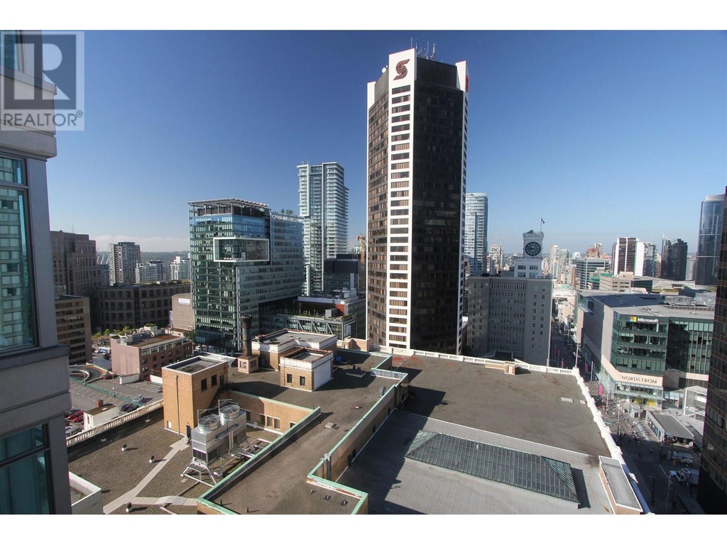 THE HUDSON! Freshly painted Corner Unit, this 23RD Floor 1 bedroom apartment with with new hard floors, balcony, flex space and office/den, with a very nice view, situated in the perfect location in centre of downtown Vancouver, 1 block from Granville and Georgia Street across from Pacific Centre and right next to The Bay with direct access from the building via the exclusive elevators into Skytrain's Granville Station. 24hour Concierge, Across from Pacific Centre only a few blocks to Amazon Hub at "The Post" on Georgia Street. Property is Tenanted. (id:6289)
