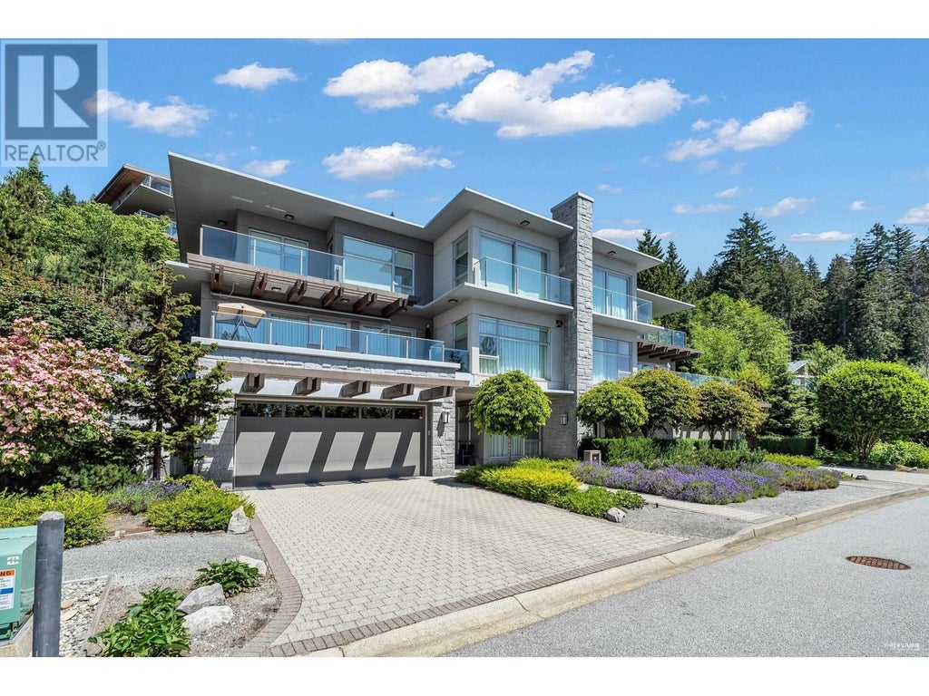 Situated in West Vancouver's most exclusive Ashton Hill Community, Panoramic city and Ocean views, outstanding designed semi-detached residence was constructed by reputational builder, British Pacific Properties. Luxury house includes high-quality standard a/c, private elevator and concrete construction. The main floor offers modern kitchen high-end appliances (SubZero, Wolf, Miele),direct access to south facing patio with ocean and city views. The upper level offers 2 bedrooms, with primary bedroom featuring sitting room, spa-like ensuite bathroom, walk-in closet & private deck. The lower level includes natural-light bedroom and full bathroom, good-size storage room & spac side-by-side garage. Close to Collingwood & Mulgrave Private school and new developed Cypress Village. (id:6289)