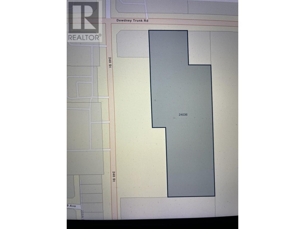 Great central location with many possiblilities for these 2 adjacent lots, CORNER property of 240 St/Dewdney Trunk: 24022 Dewdney Trunk Rd & 24036 Dewdney Trunk Rd (also on MLS) Must be sold together. These 2 parcels of land is 4.131 acres = 179,961 sqft lot. Zoned RS-3 (Single Detached Rural Residential) and is designated Agricultural in the Official Community Plan (OCP). The property also falls within the Agricultural Land Reserve (ALR) and is subject to the policies and regulations set out by the Agricultural Land Commission (ALC) as well. For residential dwellings, the following are permitted on the property: A Single Detached Residential Dwelling; A Secondary Suite(subject to Section 402.24 ); A Detached Garden Suite( subject to Section 402.11). City services (water, sanitary, storm) are available to be connected into once a Building Permit would be submitted. RARE opportunity to buy this corner side by side lots of 4.131 acres! (id:6289)