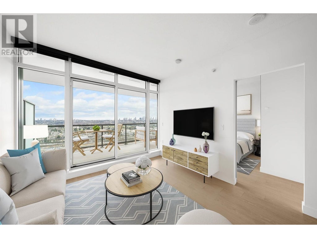 Experience urban living at its finest in this stunning one-bedroom apartment at Concord Brentwood Hillside West. Perched on the coveted 48th floor, this SOUTH exposure home boasts unobstructed views that will take your breath away, showcasing the unobstructed view of Metrotown from dawn to dusk. Step inside to discover a modern oasis featuring an open-concept layout that maximizes space and natural light. The L-shaped kitchen, a favorite among home chefs, making it perfect for both casual meals and entertaining guests. Enjoy year-round comfort with efficient AC, ensuring you stay cool during those warmer months. 5-stars amenities. Comes with 1 EV Parking and 1 Locker. (id:6289)