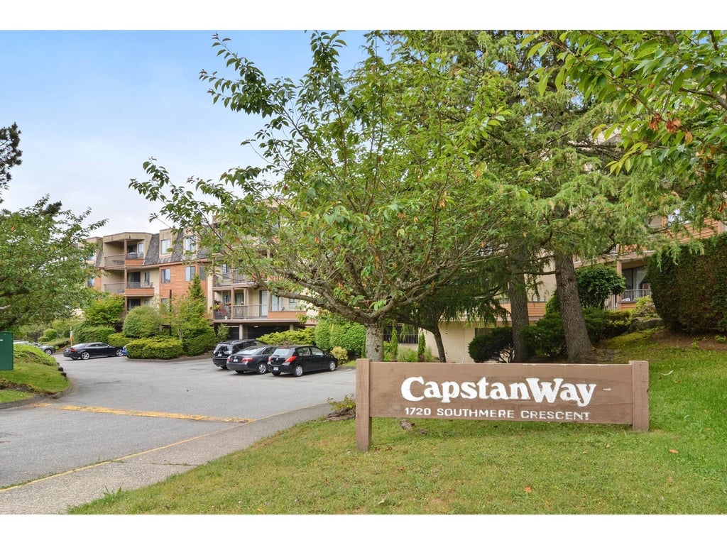 Capstan Way. Freshly renovated bright 923 sq. ft., 2-bedroom, 1-bath plan, 1st floor spacious raised balcony, north/east exposure, over looks natural greenspace. Welcomes all ages. No pets or smoking. 1 parking spot, storage, bike room. Features updated laminate flooring throughout, updated bright white kitchen with dishwasher, tile back splash and flooring, soft close drawers, updated bathroom, ensuite washer/dryer. Within steps of Semiahmoo Shopping Center, transit, Thrift Elementary and Semiahmoo Secondary Schools, Southmere Village Park and within blocks of White Rock beach. Well maintained building in an ideal location. Open House: Sat, Oct 11, 1 to 2 pm (id:6289)
