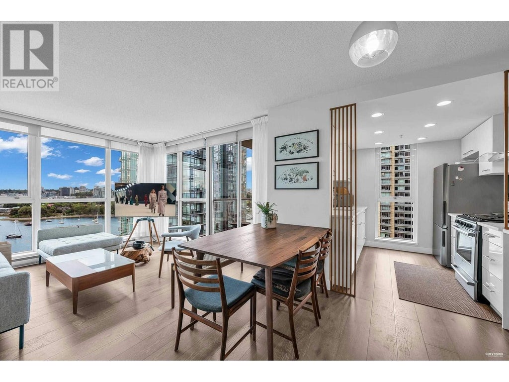 Beautifully updated corner unit at the prestigious West One in Yaletown! This spacious 2 bedroom+ large den home features floor- to-ceiling windows with stunning views of False Creek and David Lam Park. Enjoy the bright living area with a balcony and western exposure, a stylish kitchen with breakfast nook and built-in bar cabinet, and engineered hardwood floors throughout. Both bedrooms are generous in size with custom built-in storage, and the den is perfect for a home office. Comes with 2 underground parking stalls and access to Club Viva: pool, gym, squash courts, concierge, and more. Move-in ready and in one of Vancouver's best locations! (id:6289)