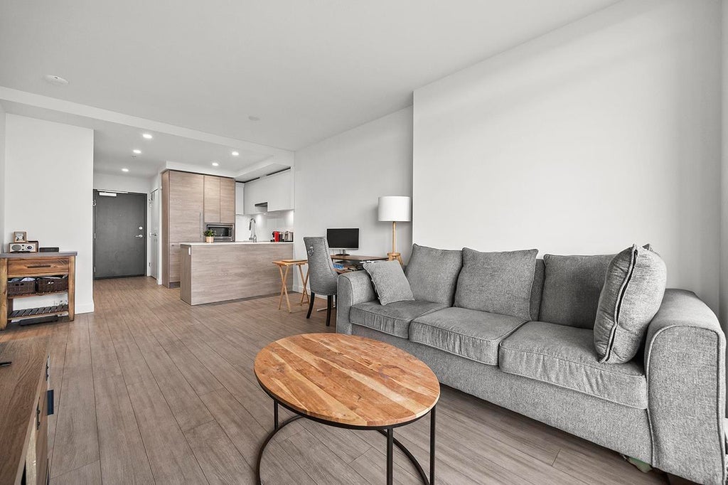 Welcome to KING GEORGE HUB 1 by PCI Developments, a vibrant community in the heart of Surrey City Centre. This freshly updated 1 BED unit features fresh paint and new flooring, along with 1 parking stall included. The functional open layout is enhanced by integrated appliances, a Fulgor Milano wall oven, induction cooktop, quartz countertops, and laminate flooring throughout. Enjoy a spacious private balcony perfect for relaxing or entertaining. Amenities include a fully equipped fitness centre, yoga studio, games room, theatre, rooftop terrace with BBQ, and social lounges. Unbeatable location steps to King George SkyTrain, Central City Mall, SFU Surrey, T&T Supermarket, and more. Book your showing today! (id:6289)