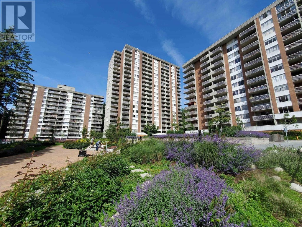One of the lowest priced 1 BDRM's in North Vancouver! This 10th floor east facing concrete hi-rise unit has courtyard garden views & morning sun. Woodcroft is situated over 13 acres along the Capilano River in a beautiful treed/landscaped location, a true North Vancouver location. Home is mostly in original condition which provides opportunity for a first-timer or investor. Amenities: indoor pool, hot tub, sauna, gym, billiards. The parking membrane project is complete & paid by current owner which provides all new landscaping and walk-ways. Building has had many updates. One cat allowed. One parking stall & locker. EV charging available. Strata fee includes *electricity, heat & hot water*. Steps to the new Lions Gate Recreation Centre (5 mins), Park Royal shopping, cinema, transit, (10 mins) hiking trails, fishing, (in your backyard) skiing at Grouse Mountain, Capilano River trails to Ambleside beach! Live the North Vancouver Lifestyle - call today! Some virtual staging. OPEN HOUSE OCT 19 (2-4PM) (id:6289)