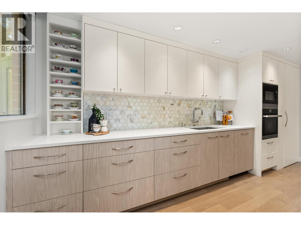 A rare offering of thoughtful design and timeless quality. This extensively renovated 2-bedroom, 2-bathroom residence-reimagined through a $300,000 architect-led renovation-blends refined materials with effortless functionality. Featuring integrated premium Miele appliances, Coswick European hardwood floors, heated bathroom floors, a heated towel bar, and a bidet-style Toto toilet, every detail has been carefully curated. Both bathrooms feature elegant walk-in showers with rainhead fixtures for a spa-like experience. Custom cabinetry by Duke Kitchens, designer Artemide lighting, and enhanced task and ambient lighting throughout elevate the space. The expansive 600 square ft patio with a gas fireplace and BBQ connection extends the living space outdoors, complemented by a second private patio tucked into a tranquil forest setting. Purposefully designed with senior-friendly enhancements, the home includes two side-by-side parking stalls, a storage locker, and access to a pool and hot tub. Rentals now permitted. (id:6289)