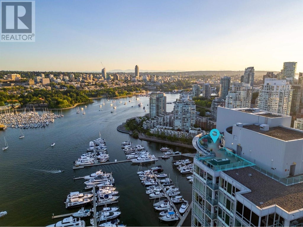 Stunning waterfront Penthouse at Quaywest with over 2093 square ft of luxury living space. Featuring floor-to-ceiling window frames and breath-taking views of False Creek, city line and north shore mountains. Enjoy the magnificent lifestyle Yaletown has to offer! The expansive 1,337 square ft private patio with panoramic views is well suited for hosting intimate events and entertaining guests. Thoughtfully designed with elegant finishes, the home comes with A/C, 2 parking stalls, and ample storage. A 3rd bedroom can be added with light reno. Full-service amenities-concierge, indoor pool, gym, sauna, and more. Steps to the Seawall and world-class dining, this penthouse is a redefinition of luxury living in Vancouver. (id:6289)