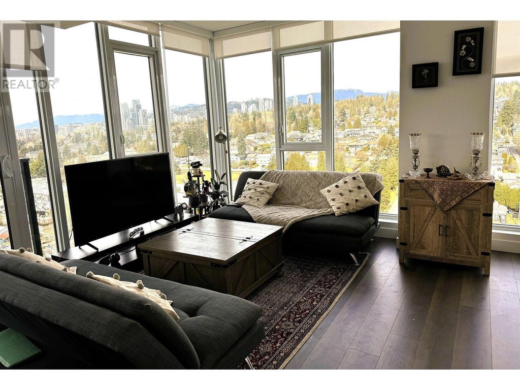 Bright and spacious 2-bedroom, 2-bathroom corner unit with breathtaking panoramic views. Enjoy the modern kitchen, perfect for cooking and entertaining, along with an ensuite primary bedroom for added convenience and privacy. Stay cool year round with a built-in air conditioner--with the cost conveniently included in the maintenance fee--for added comfort and peace of mind. Located just minutes from Lougheed Town Centre, SkyTrain stations and shopping centres, this home offers the ultimate in comfort and accessibility. Don't miss the chance to make this beautiful condo your new home! (id:6289)