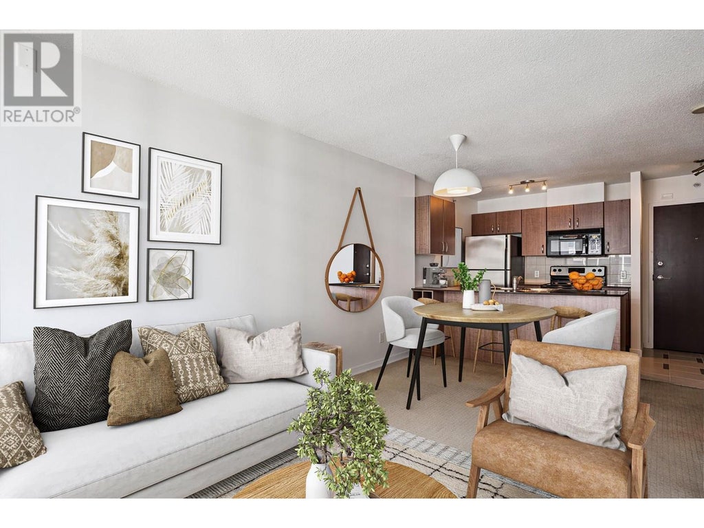 Welcome to THE HUDSON by Wall Financial, a sought-after, well-managed building conveniently located in the heart of Downtown. Enjoy a modern urban lifestyle with Pacific Center Mall, dining, entertainment & shopping at your doorstep. This 1 bedroom plus den at 500sqft, has an ultra efficient layout with no wasted space, bright with large windows, Newly Painted, move-in ready. Low Monthly Maint Fee of $282.08. Easy access to Granville SkyTrain. 1 secure parking included. Building Features: Fully equipped gym, 24-hour Concierge, Visitor parking, Bike Storage, Lounge, and Meeting Room. Perfect for investment or downtown lifestyle starter, with Live/Work Zoning. Open House: Oct 12 (Sun), 2-4PM (id:6289)