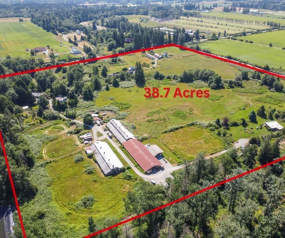 SUNNY SOUTH SURREY with a true opportunity for the whole family to live together! This is a once in a lifetime property that has an abundance of options for your imagination & dreams! Gorgeous (Organic) 38.7 acre ESTATE property located in highly desirable & sought-after area of Hazelmere. Two solid main homes are acres apart with separate addresses & driveways. A multitude of large barns 289'X50', 139'X49', 110'X22', 92'X24',42'X34' and workshops. The acreage has some gentle rolls with the salmon producing Little Campbell River meandering through "a true nature-watchers paradise". Water rights of 37,000m3 per year. A blank canvas for you to create an Equestrian estate, a winery, greenhouse production, your dream farm. Fabulous location just minutes to the US border and freeway access. WOW! (id:6289)