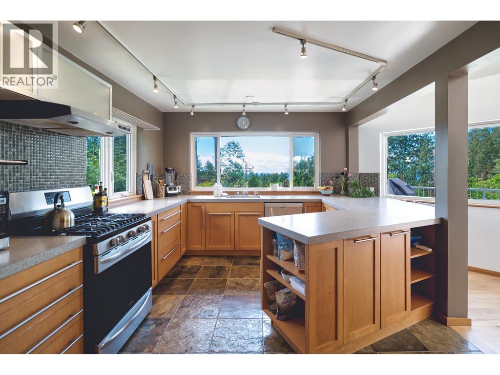 Welcome to your own coastal retreat, set on nearly half an acre of treed and beautifully landscaped grounds. This bright and airy 2-bedroom + office home offers partial ocean views with potential to enhance. Enjoy over 400 sq.ft. of sun-drenched, south-facing deck-perfect for morning coffee or evening gatherings-plus a covered patio below for year-round outdoor living. Inside, the open-concept layout features newer modern windows, sleek updated appliances, and a new tankless hot water on demand system. The backyard is a private haven, complete with terraced gardens, fruit trees, and a tranquil water feature. An EV charger is ready in the carport, and convenient rear-lane access offers exciting possibilities-whether you are envisioning a workshop, studio, or expanded garden oasis. (id:6289)