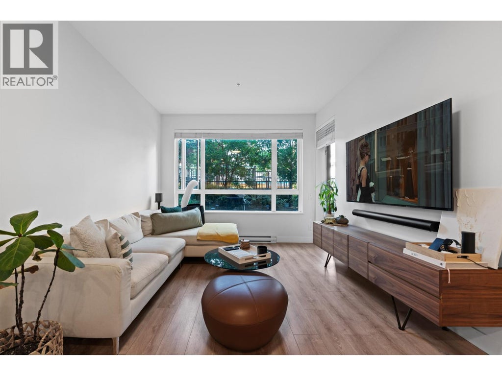 Welcome to this inviting 2 bed, 2 bath ground-floor home, positioned on the quiet side of the building for maximum privacy. Thoughtfully designed, this unit offers a blend of comfort, style & townhome-style convenience with direct patio access. Step outside to your expansive private patio, a true extension of your living space. Inside, the open-concept layout is both functional & elegant, featuring a modern kitchen with quartz countertops, stainless steel appliances, & sleek cabinetry. The two bedrooms are smartly separated for added privacy, with the spacious primary suite offering a walk-through closet & spa-like ensuite. Located mins from the SkyTrain, shopping, schools and parks, this home checks all the boxes! 1 EV charging and 1 locker (id:6289)