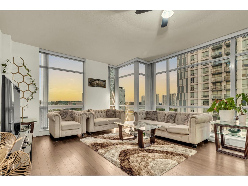 Modern urban living in the heart of Surrey Central! This bright and spacious 1 Bedroom plus DEN Corner Unit Condo is perched on the 10th floor of a solid concrete High-Rise, offering stunning Mountain, City and South Facing views through Floor to ceiling windows. Enjoy an open-concept living area flooded with natural light, steps from SkyTrain, Library, Civic Plaza, Shopping, Dining, SFU and KPU Campus. The functional layout includes a versatile den perfect for a home office. This Condo includes one secure undergound parking and one storage locker. An ideal opportunity for first-time buyers or investors seeking unbeatable convenience and lifestyle. (id:6289)