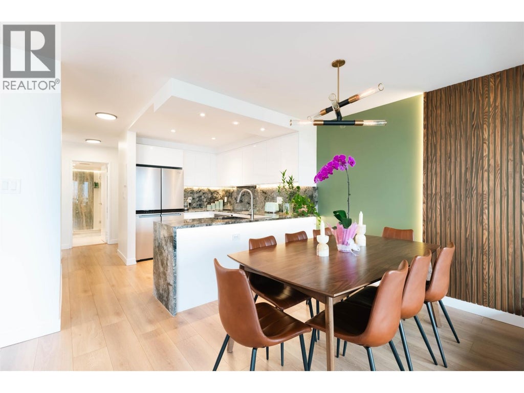 This rarely available concrete corner unit at The Royal Kensington has been completely renovated with high-quality finishes and exceptional craftsmanship throughout. A standout in Lower Lonsdale, where concrete buildings of this era are hard to find. Enjoy stunning water, downtown, Lions Gate Bridge, and mountain views from the main living spaces and the large balcony. The home offers generous room sizes, excellent storage, and a thoughtful layout enhanced by stylish and functional updates. The building is well-managed and features great amenities including an outdoor pool, indoor hot tub, sauna, fitness centre, and workshop. Unbeatable location just steps to restaurants, shops, the SeaBus. Includes one parking spot, a storage locker, and bike room. Rentals allowed. No pets. (id:6289)