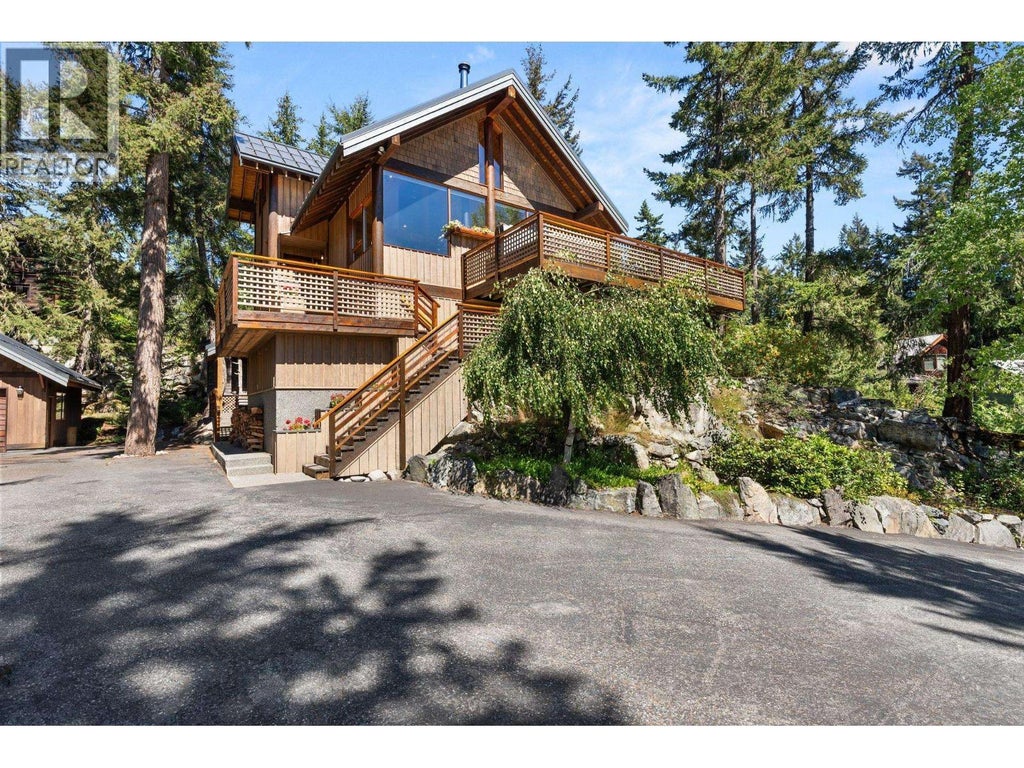 Perched on a 0.65-acre lot in Whistler´s Emerald Estates, this 1,709 square foot four bedroom 2.5 bathroom home blends mountain charm with everyday comfort. Sweeping views of Whistler and Blackcomb Mountains fill massive southeast facing windows, while a handcrafted staircase, cozy tile floors, and a stone fireplace create a warm and inviting atmosphere. The open concept living space flows to a large wraparound deck and hot tub, perfect for relaxing after a day on the slopes. With a garage, lower-level storage, and direct access to Crown land trails, this property offers privacy and convenience just minutes from Whistler Village An adjacent 0.28-acre lot is also available to create nearly a full acre of alpine space, ideal for added seclusion or future development. (id:6289)