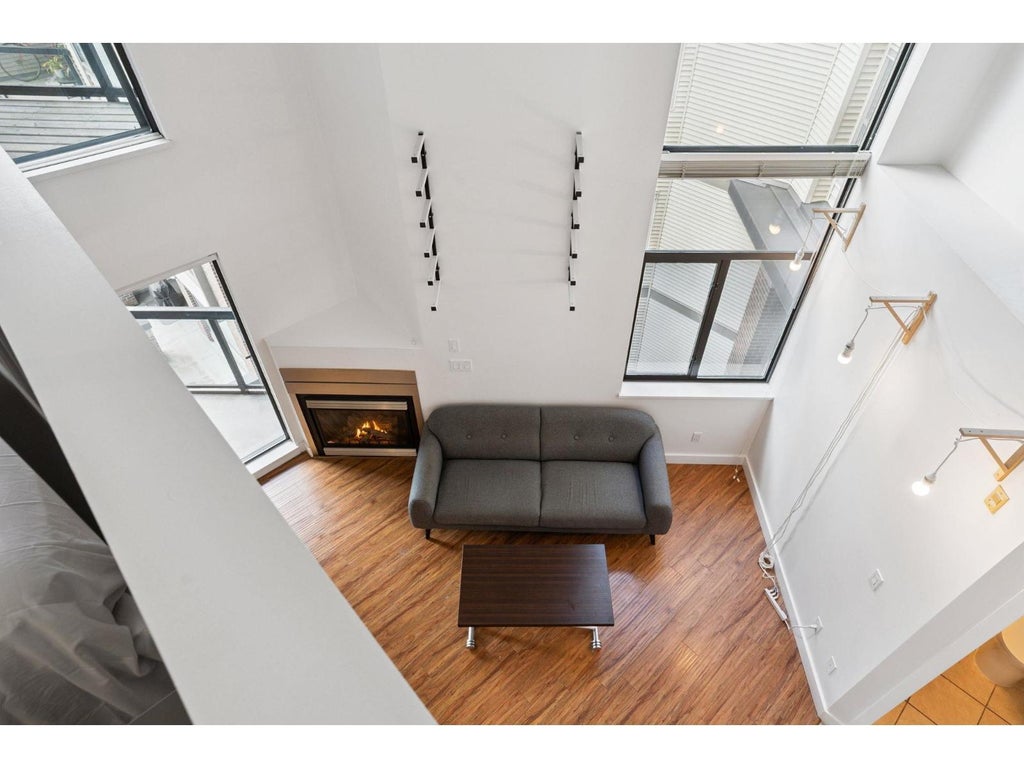 Welcome to The Access! This stunning 1 bedroom, 1 bathroom TWO LEVEL top floor PENTHOUSE-LOFT has been beautifully updated and is move-in ready. Soaring 18' ceilings and floor-to-ceiling windows flood the home with natural light, while dual balconies provide city views from both levels. Recent renovations include wide-plank flooring, modern kitchen counters, stylish backsplash, s/s appliances, updated bathroom. Enjoy the fireplace, open-concept layout, and contemporary design throughout. The community offers fantastic amenities-clubhouse, gym, hot tub.. All this in an unbeatable location, just steps to Gateway SkyTrain, shopping, parks, and everyday conveniences. A perfect opportunity for first-time buyers, students, or investors! 1 Parking 1 Locker. (id:6289)
