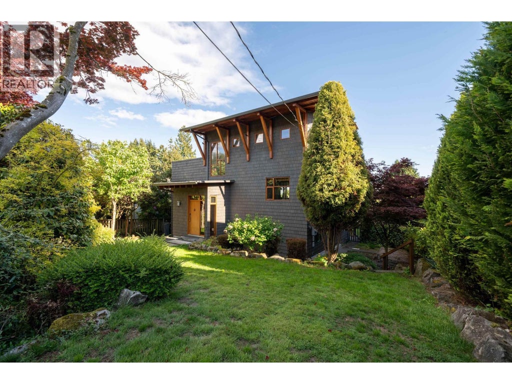 This stunning West Coast home, located in Dundarave on the quiet side of Mathers, showcases exceptional craftsmanship and unique details. The open floor plan includes a Chef's kitchen connected to an enchanting deck and garden, ideal for entertaining. The home features beautiful exposed timbers and custom millwork throughout. Enjoy spectacular views from Lions Gate Bridge to Point Grey, especially from the hot tub on your private rooftop deck. The south-facing backyard offers extensively landscaped gardens perfect for relaxation. Conveniently, it's within walking distance to IP & PJ (French Immersion) Elementary, WV High, Dundarave Village, the Rec & Senior Centres, seawall, and beach. A one-bedroom legal suite completes this remarkable property. (id:6289)