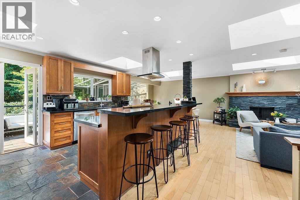 Beautifully updated family home in a tranquil Upper Delbrook location, just minutes from World Famous Grouse Mountain, Capilano Suspension Bridge, Edgemont Village, and Delbrook Community Centre. The main floor boasts an open layout with Skylights, Fireplace, Spacious gourmet Kitchen with eating bar, Family Room solarium, 3 bedrooms, 2 full bathrooms on main floor. Step out to a Sunny Deck overlooking a Private Fenced backyard oasis. The lower level offers a large rec room, play area, Bright office with walkout to backyard. New Furnace, New on Demand Hot Water Heater. Double Garage. A Registered one-bedroom suite with full bath provides an excellent mortgage helper. Backing onto Mosquito Creek Trail, this home enjoys a peaceful creekside setting. (id:6289)