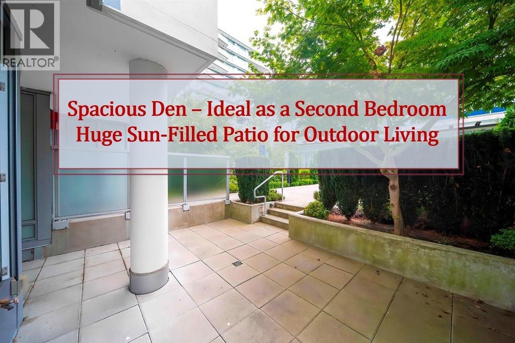 Welcome to Sorrento, a well-maintained and centrally located residence. This bright and spacious 1-bedroom plus den home offers 671 sq. ft. of thoughtfully designed living space. This spacious den can be converted into an extra bedroom, making it perfect for families preparing for a baby or frequently hosting visiting family members. The highlight of this home is its expansive south-facing patio, providing an abundance of natural light indoors and a generous outdoor area ideal for dining, entertaining, or simply enjoying the sunshine. Residents enjoy access to excellent amenities, including a fitness centre and pool, while the central location offers unmatched convenience with the SkyTrain, shops, and everyday essentials all within walking distance. (id:6289)