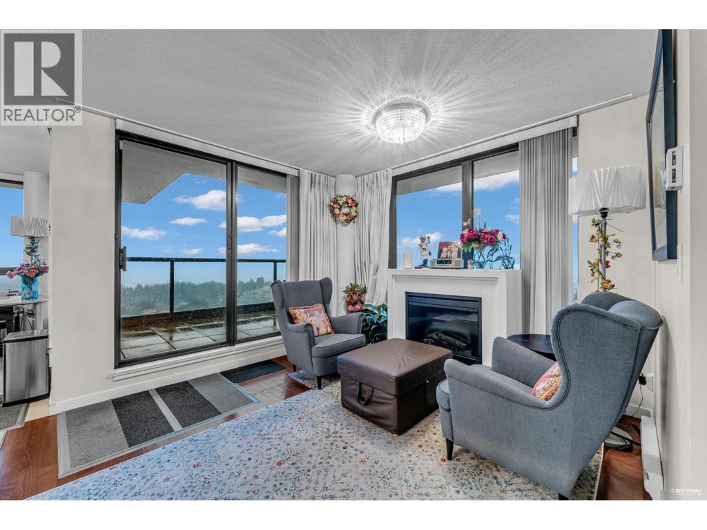 "Arcadia East" by noted Bosa - Stunning Penthouse with 270° Views! This exceptional penthouse offers unobstructed North, East, and South views with an ideal layout featuring 3 bedrooms, 2 baths, 2 balconies, a cozy fireplace, 1 locker and Two Parking Spots. The gourmet kitchen boasts granite countertops and high-end stainless steel appliances, while hardwood floors enhance the living room, dining area, and hallway. The building offers great amenities including a fitness center, yoga room, social lounge, and secure parkings. Located steps away from, restaurants, Save-On-Foods, Shoppers, Starbucks, BC Liquor, Community Center, Library, cafes, all level of banks and transit options and more. Conveniently located near Metrotown. A rare opportunity for luxury and convenience in Burnaby South! Open House: Sat (Sep 27) 2:30-4pm (id:6289)