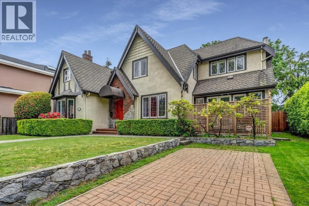 A stunning Tudor Revival residence seamlessly blends historic character with modern convenience. Boasting 5 bdrms & 5 bthrms, the home welcomes you with original, hand-crafted hardwood floors, & timeless craftsmanship. Expansive living spaces incl both formal living & dining room, chef´s kitchen with oversized island, Sub-Zero fridge, double ovens & gas range opens effortlessly to over 400+ sf of patio, perfect for al fresco dining. Upstairs, 3 bedrooms await, incl the sumptuous primary suite. Your private retreat features lavish walk-in closet with handy built-ins, Juliet balcony overlooking the garden, & spa-inspired ensuite with marble counters, complete with jetted soaker tub, rain shower, heated floors & heated towel rack. Prime Kerrisdale location steps from boutique shops, eateries, & golf courses. (id:6289)