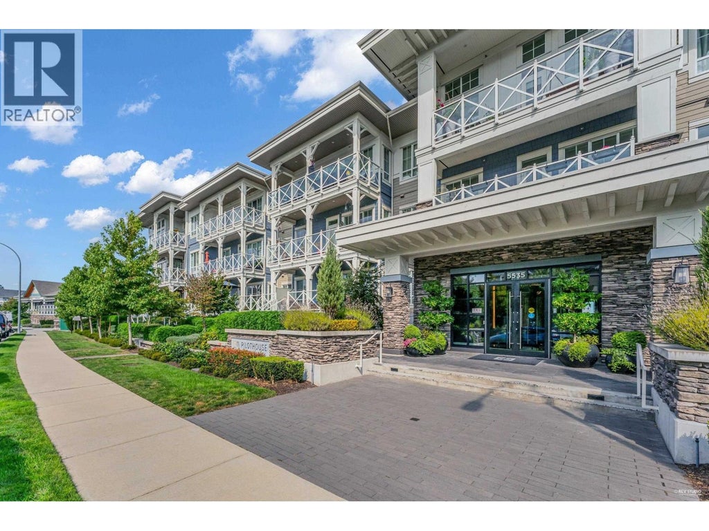 Welcome to Pilothouse by Polygon in Ladner. This boutique complex sits on the banks of Captain's Cove Marina offering serene surroundings with picturesque water views, walking trails, boat launch and more. The home offers bright open concept living with high ceilings throughout, blending functionality with custom lighting & window coverings. Gourmet kitchen with high-end ss appliances, quartz counters and oversized serving island. Master bedroom offers a walk in closet and spa-like ensuite complete with dual vanity and soaker tub. 1 parking stall (EV rough-in) near elevator and 1 private storage room located just down the hall from the unit! Access to the Hampton Club with outdoor pool/hot tub, gym, common room, and guest suite. Spacious balcony with gas BBQ hookup & tranquil marina views. (id:6289)